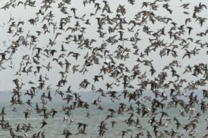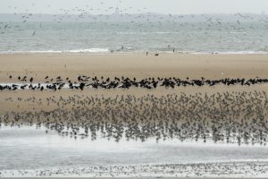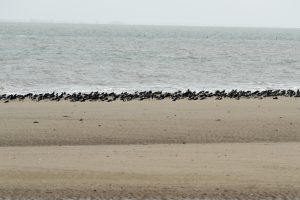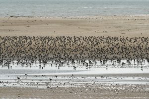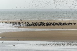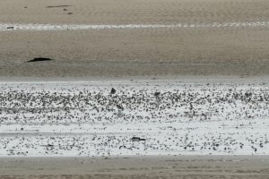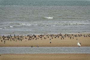 Une vingtaine d’adhérents ont bravé une météo incertaine ce samedi 11 novembre, à l’heure du déjeuner qui plus est, pour aller à la rencontre des oiseaux qui viennent passer l’hiver sur nos côtes. La réserve naturelle nationale de Moëze Oléron est un endroit privilégié pour les admirer, pas moins de 150000 oiseaux y séjournent chaque année. C’est Nathalie, guide de la Réserve, qui a positionné les longues-vues sur les différentes espèces qui fréquentent cette zone réserve intégrale sur la plage de la Perrotine pour se reposer à marée haute. Parmi les espèces présentes que l’on a pu découvrir, citons :