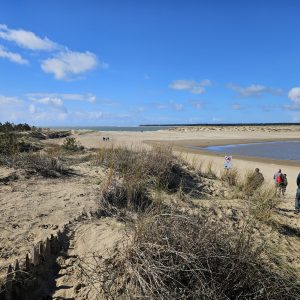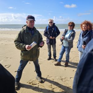 La préservation des dunes littorales est un enjeu crucial face aux attaques de plus en plus fréquentes de l’océan sur notre trait de côte. Ces actions de conservation et d’entretien incombent à l’ONF. Philippe LEQUEUX, ancien technicien forestier de l’ONF, connait très bien le sujet et a volontiers partagé ses connaissances avec les adhérents inscrits à cette sortie.