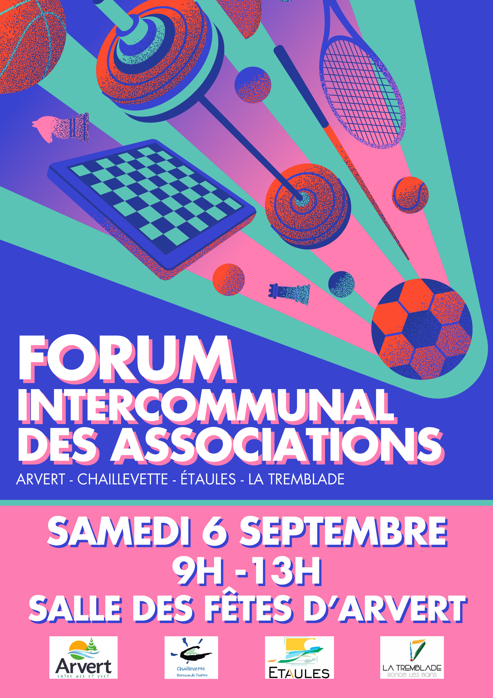 ![]() Cette année, le traditionnel forum des associations se tiendra dans la salle des fêtes d'Arvert. On vous attend nombreux sur |